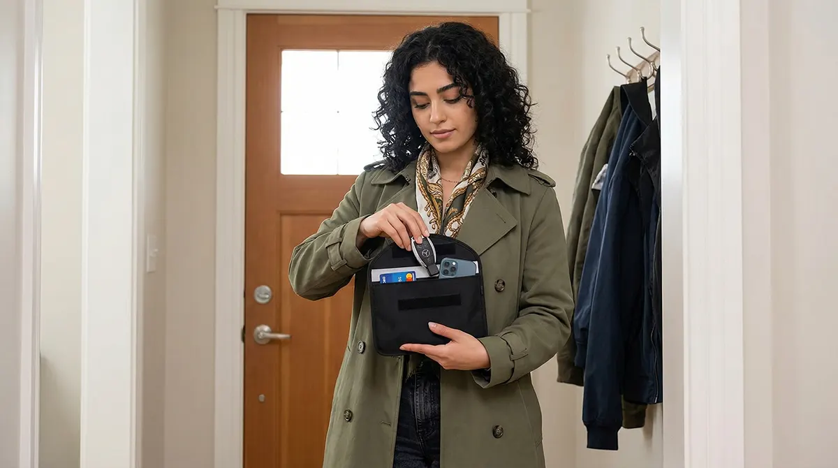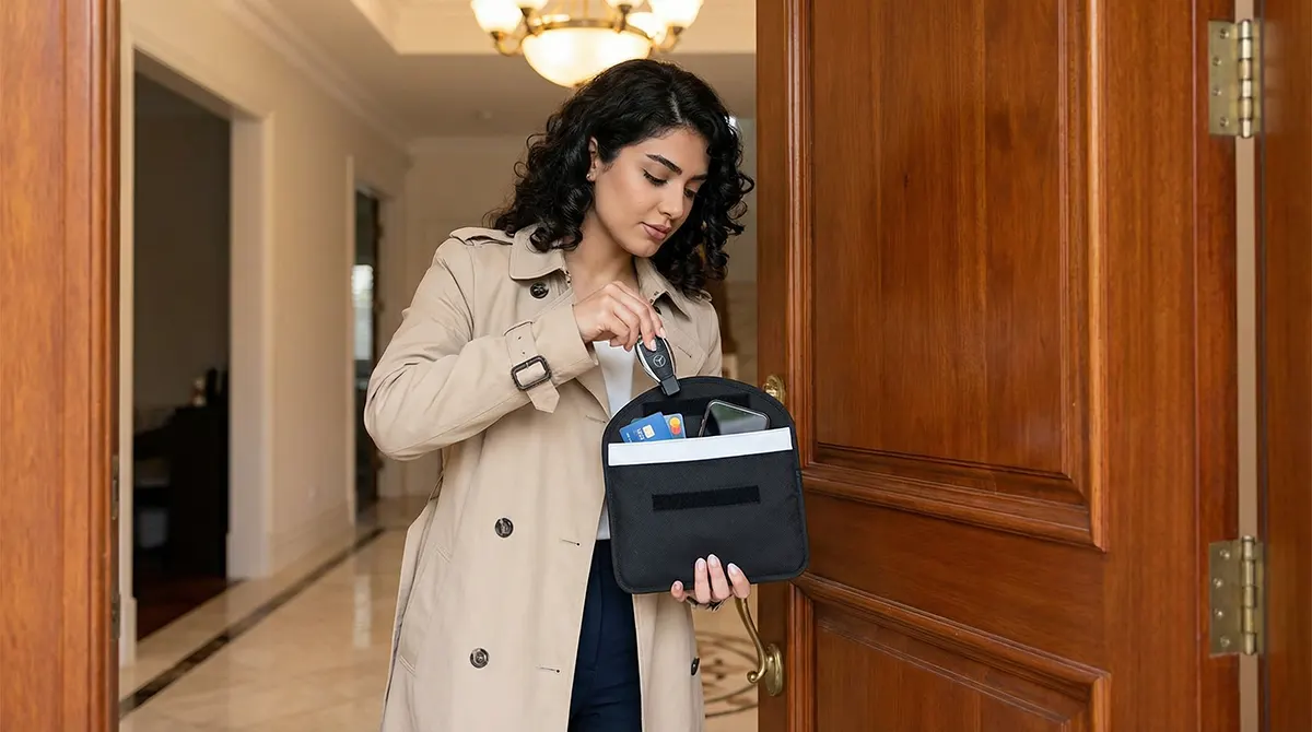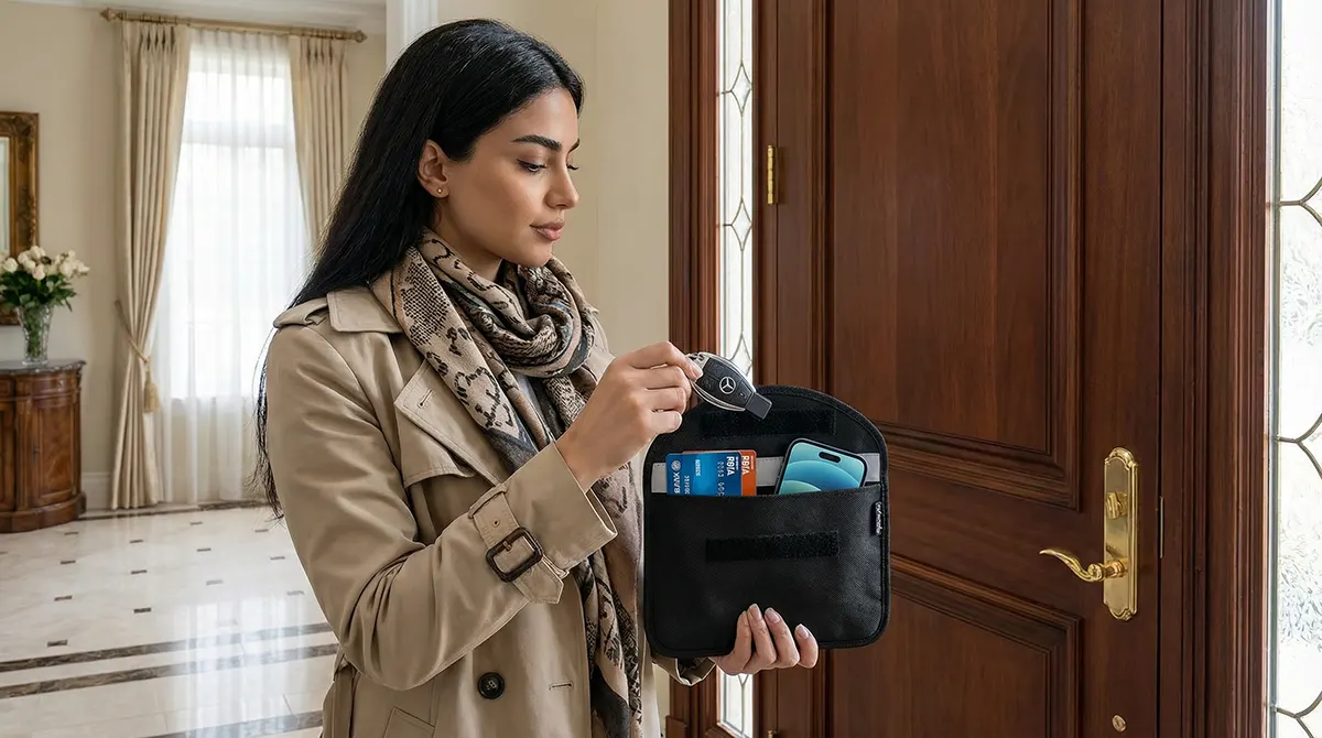 ۲. خداحافظی با سرقت خودرو (Keyless): سوییچ خودروهای کیلس دائم در حال ارسال کد است. سارقان با تقویت این موج، خودرو را باز میکنند. با قرار دادن سوییچ در کیف سدید، ارتباط کاملاً قطع شده و سرقت غیرممکن میشود.