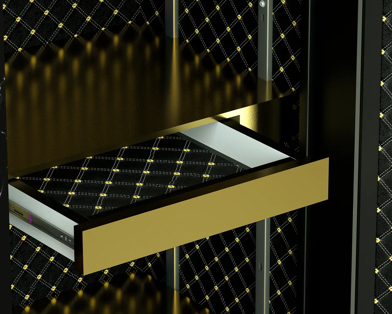 - صندوقچه داخلی با قفل مجزای دیجیتال با قفل RFID بولوتوسی برای ایجاد امنیت بیشتر برای اقلام کوچکتر و با ارزشتر