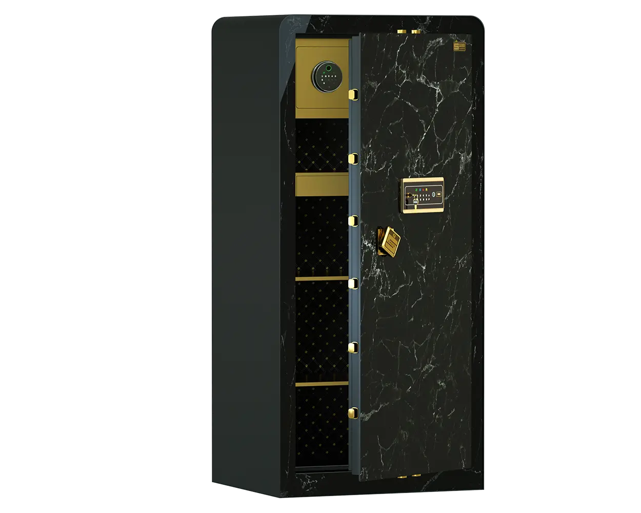 • دارای کلید، رمز دیجیتال و رمز اثرانگشتی همزمان جهت حداکثر امنیت